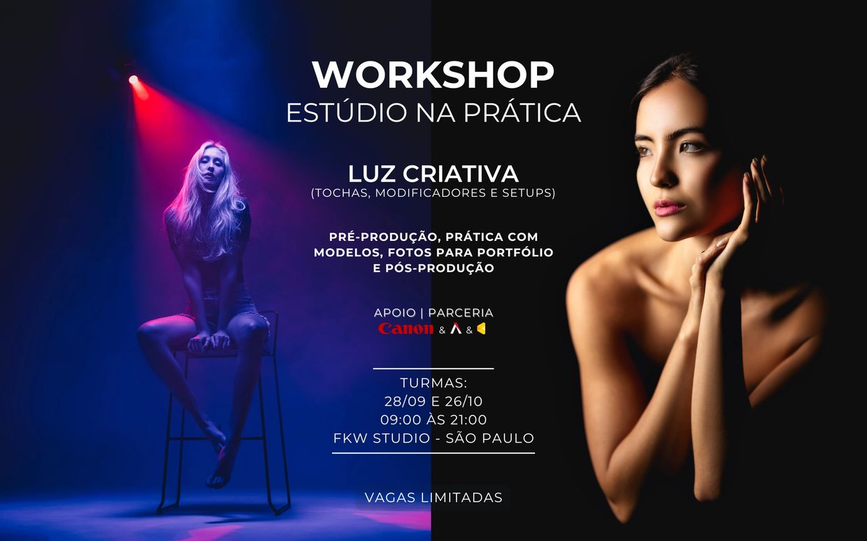 Iremos então para uma extensa parte prática em que faremos os clicks das modelos que estarão presentes. Falarei sobre direcionamento de pessoas, manipulação da luz, poses e expressões faciais, configurações do equipamento, composição, lentes adequadas para cada situação, referencias x criatividade, como ajustar a iluminação e muito mais.